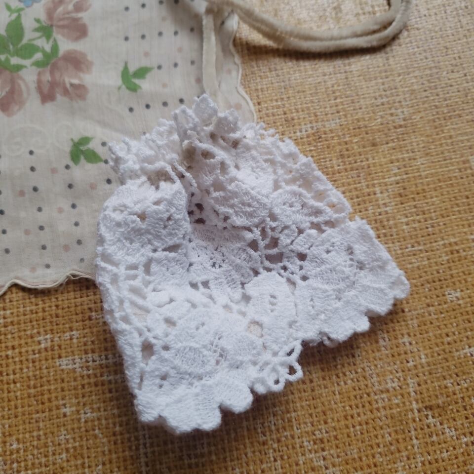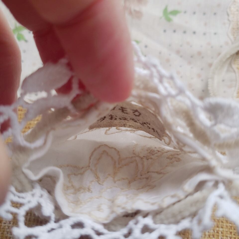 ブラウスに使われていたレースをミニミニ巾着にしました。
