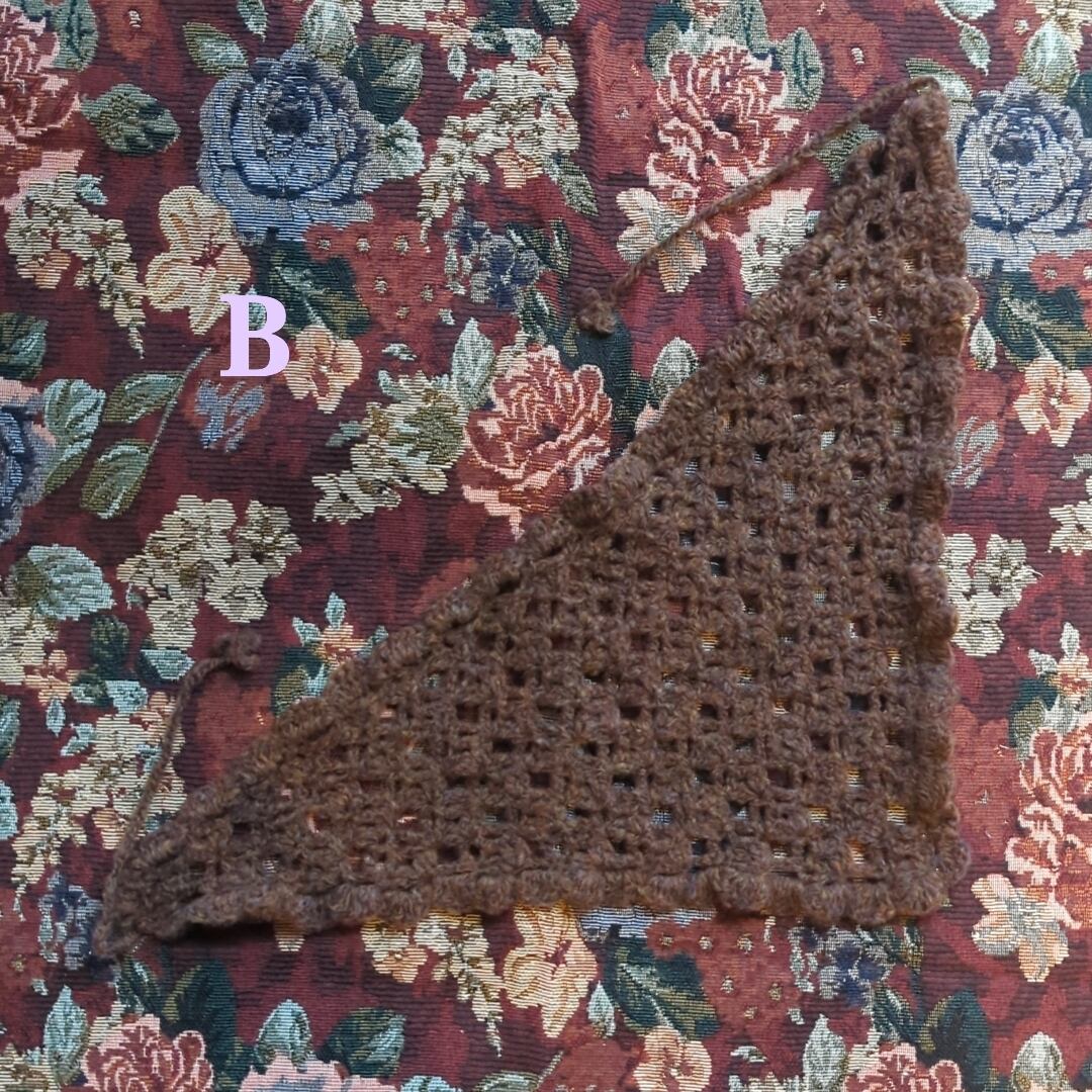 ※大きさ的には、Cの赤いものが大きめ(a部分が長めで、ひも部分だけで結ぶと顔周りよりは大きいのでバブーシュカとして使うのであれば編んでいる部分まで巻き込んで結ぶか、耳上あたりにピン等でとめるなど工夫が必要)となっております。