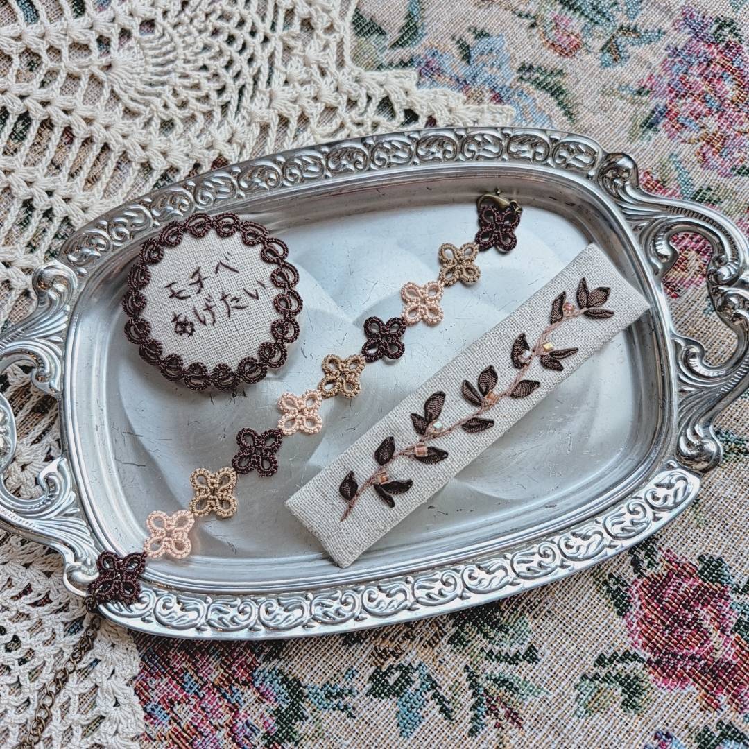 素材…ブローチ:刺繍糸、レース糸、布→綿