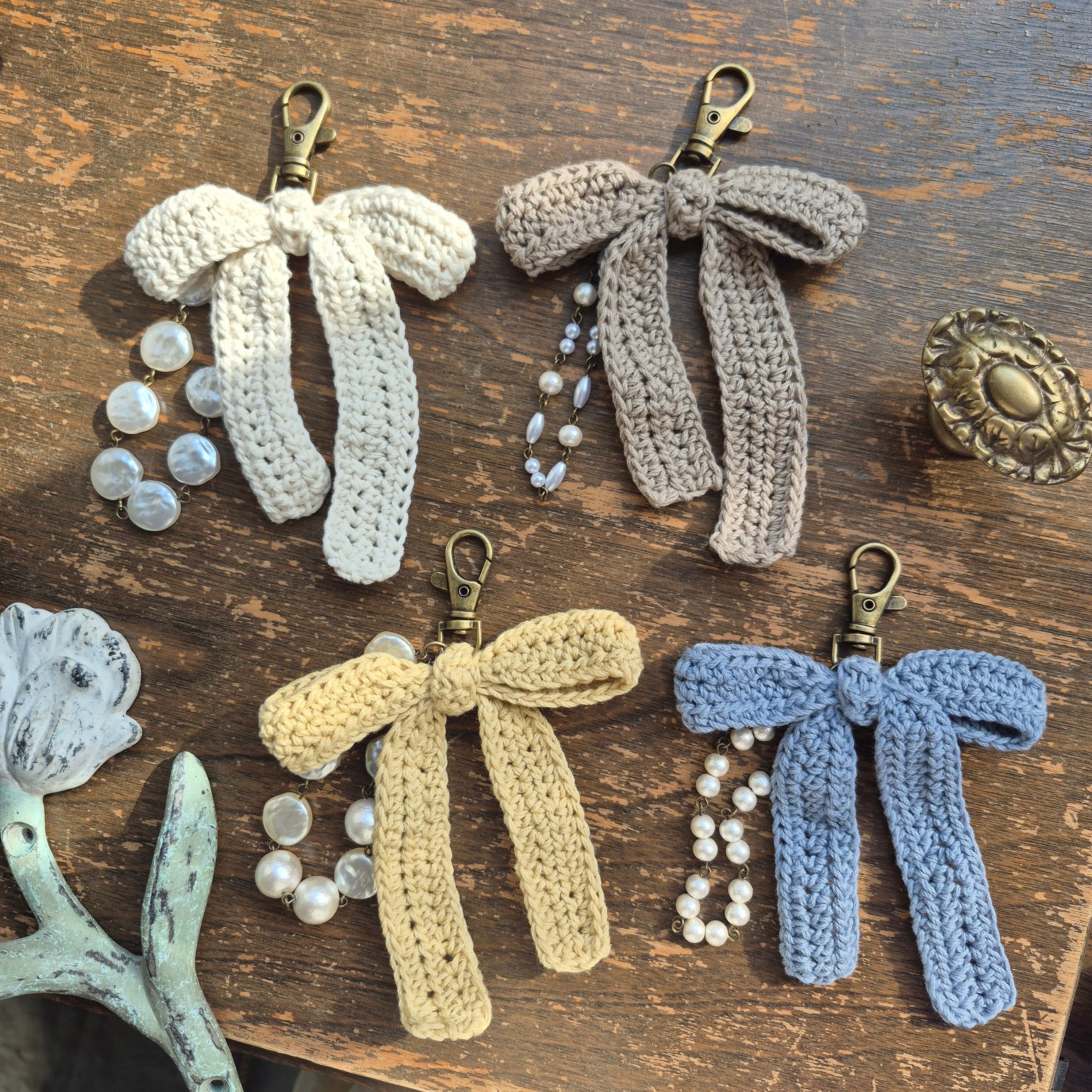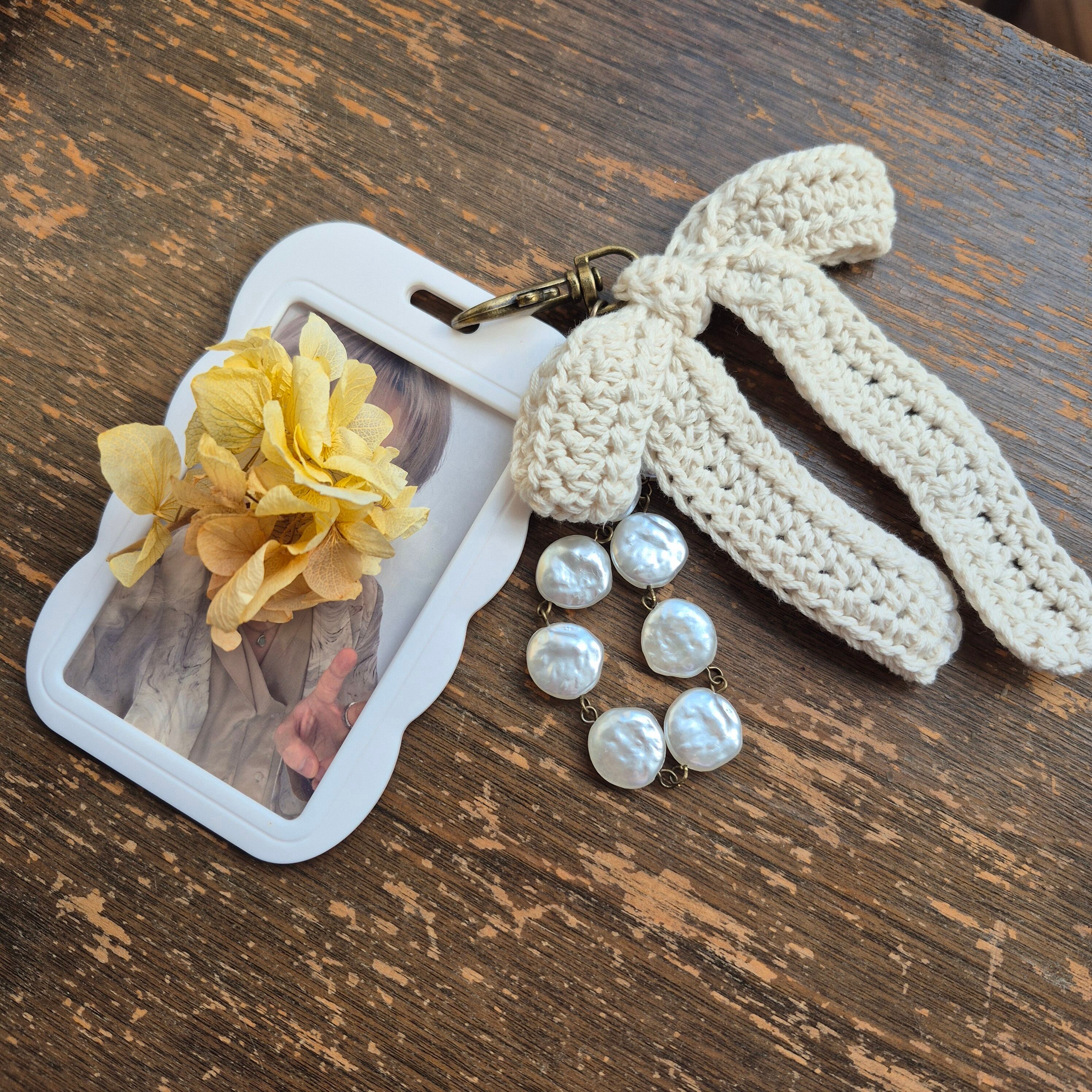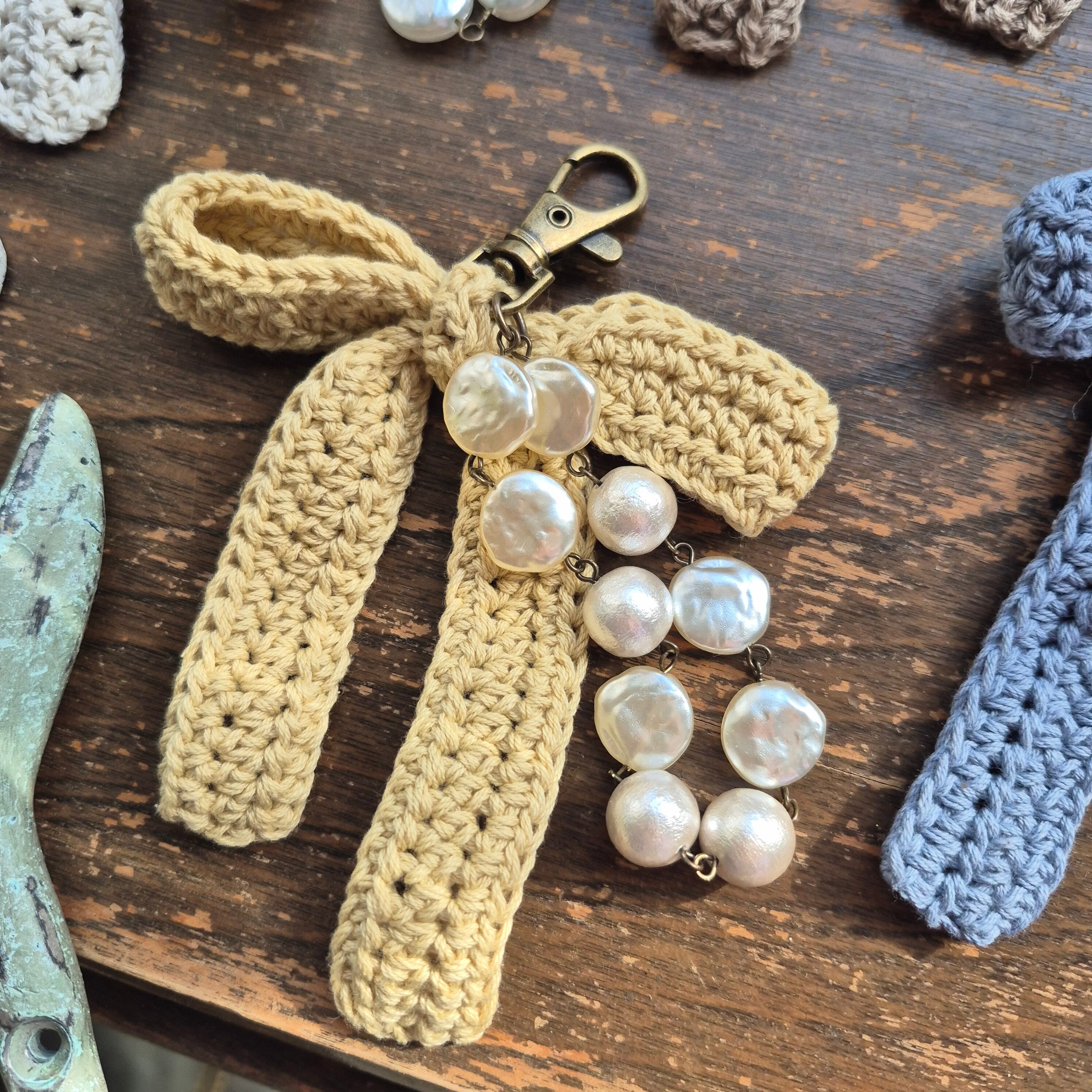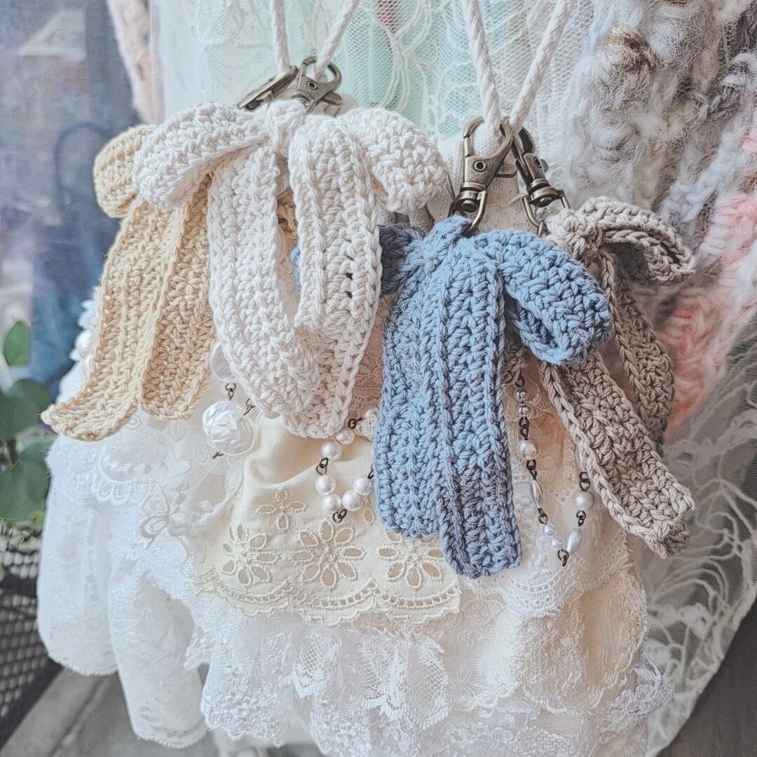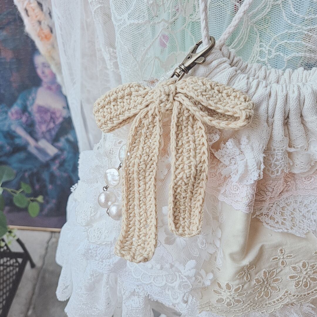 コットンパールやアクリルビーズを使い、りぼんと一緒に垂らして今風のチャームに仕上げました(* 'ᵕ' )でもおはなざっからしくナチュラル感を意識しました◎