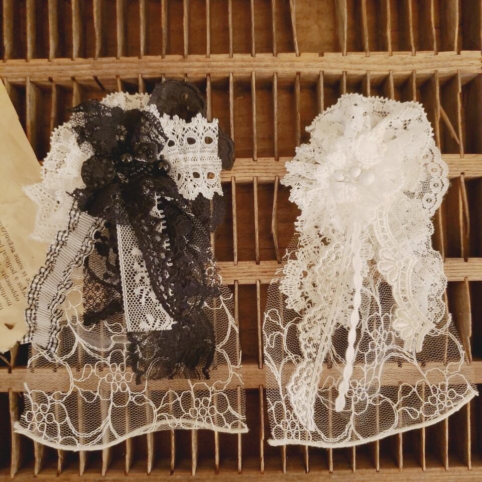 2024/2/1~3/3までmoca店内にて開催している「moca展#010 白と黒」にちなみ、白と黒の2wayコサージュをお作りいたしました。