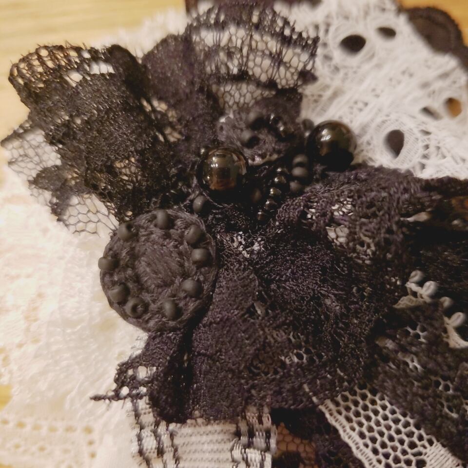 白×黒 のコサージュ 《オニキス》 宝石言葉:成功・夫婦の幸福・厄除け・秘密